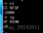 敲完之后,就可执行我们写的汇编指令了,我们要先使用r指令改变 cs 和ip的指向, cs和ip是8086CPU中