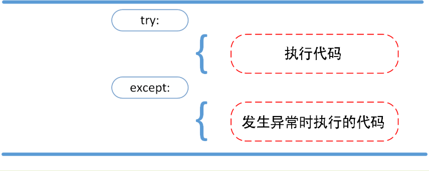 如果在执行 try 子句的过程中发生了异常,那么 try 子句余下的部分将被忽略。如果异常的类型和 except 之后的名称相符,那么对应的 except 子句将被执行。