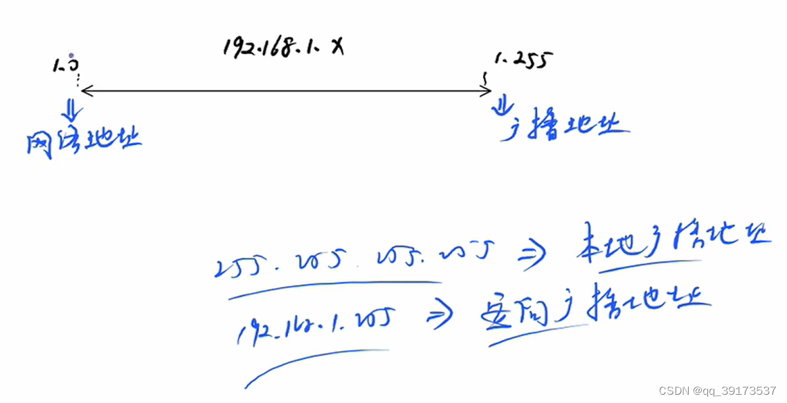 广播地址:网段的末尾,用来表示整个网段所有主机