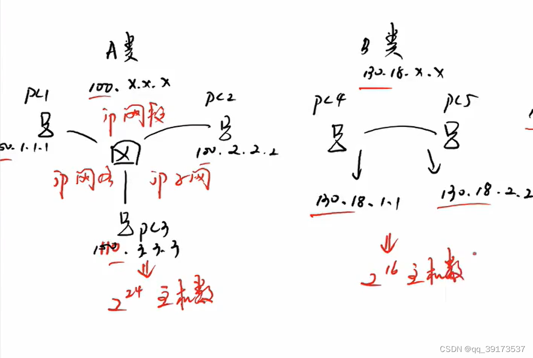 C类:192.0.0.0 -- 223.255.255.255 前24位为网络位,后8位为主机位