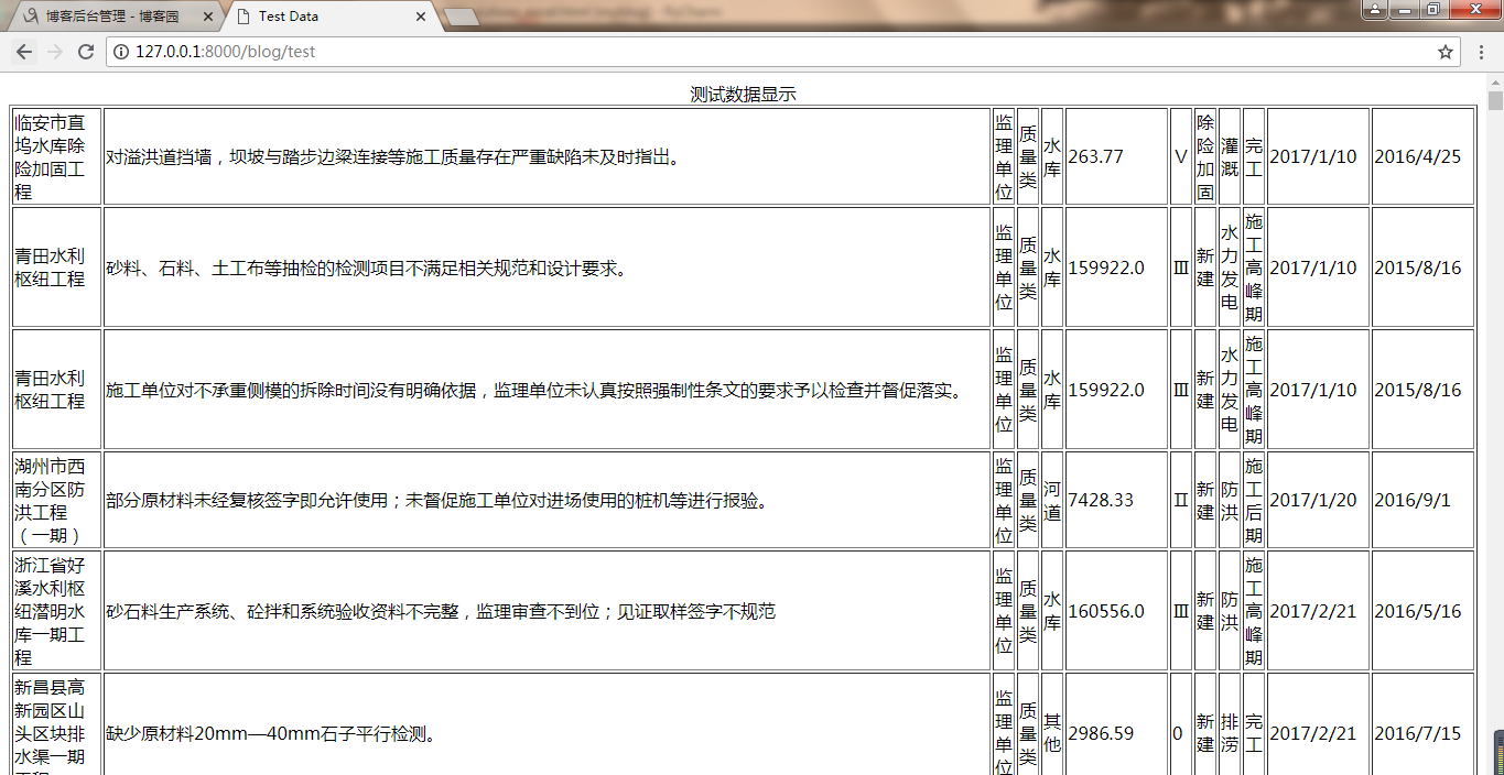 大功告成,pip manage.py runserver吧,点击“导入数据”的超链接按钮,就可以看到奇迹发生