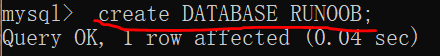 我的实例: 创建一个名为RUNOOB的数据库
