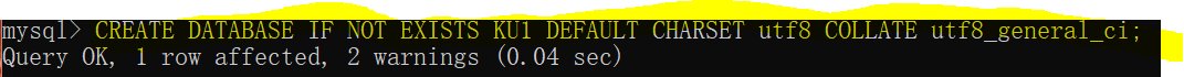 CREATE DATABASE IF NOT EXISTS KU1 DEFAULT CHARSET utf8 COLLATE utf8_general_ci;