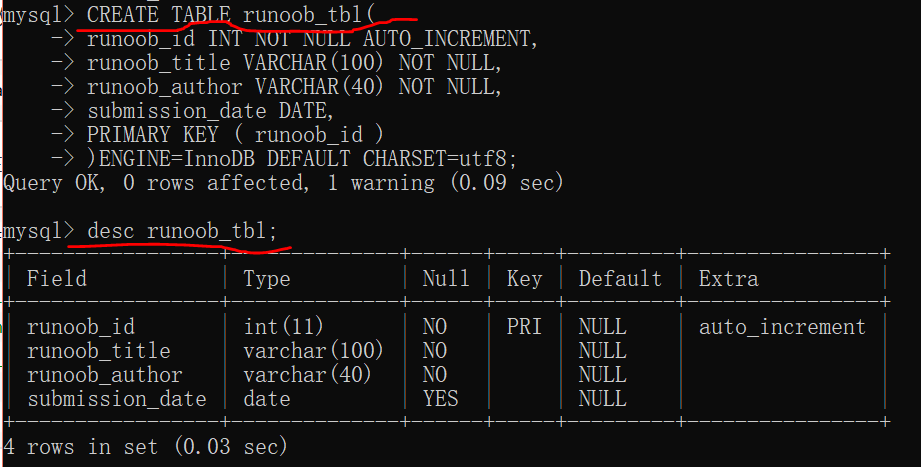 CREATE TABLE runoob_tbl(