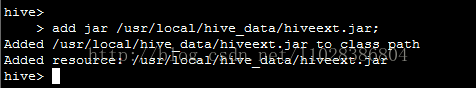 add jar /usr/local/hive_data/hiveext.jar;将hiveext.jar导入Hive的class_path,如下图所示: