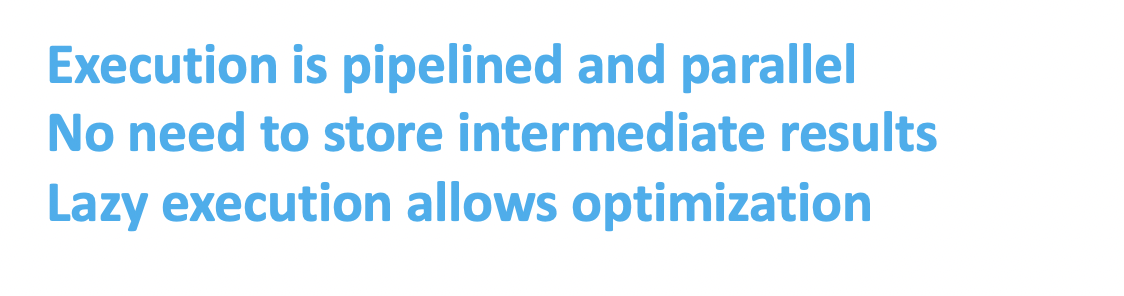 执行会自动进行流水线和并行化,无需储存中间结果(当然有些时候可能为了提升效率或达到一定目的依然需要对中间结果进行缓存)
