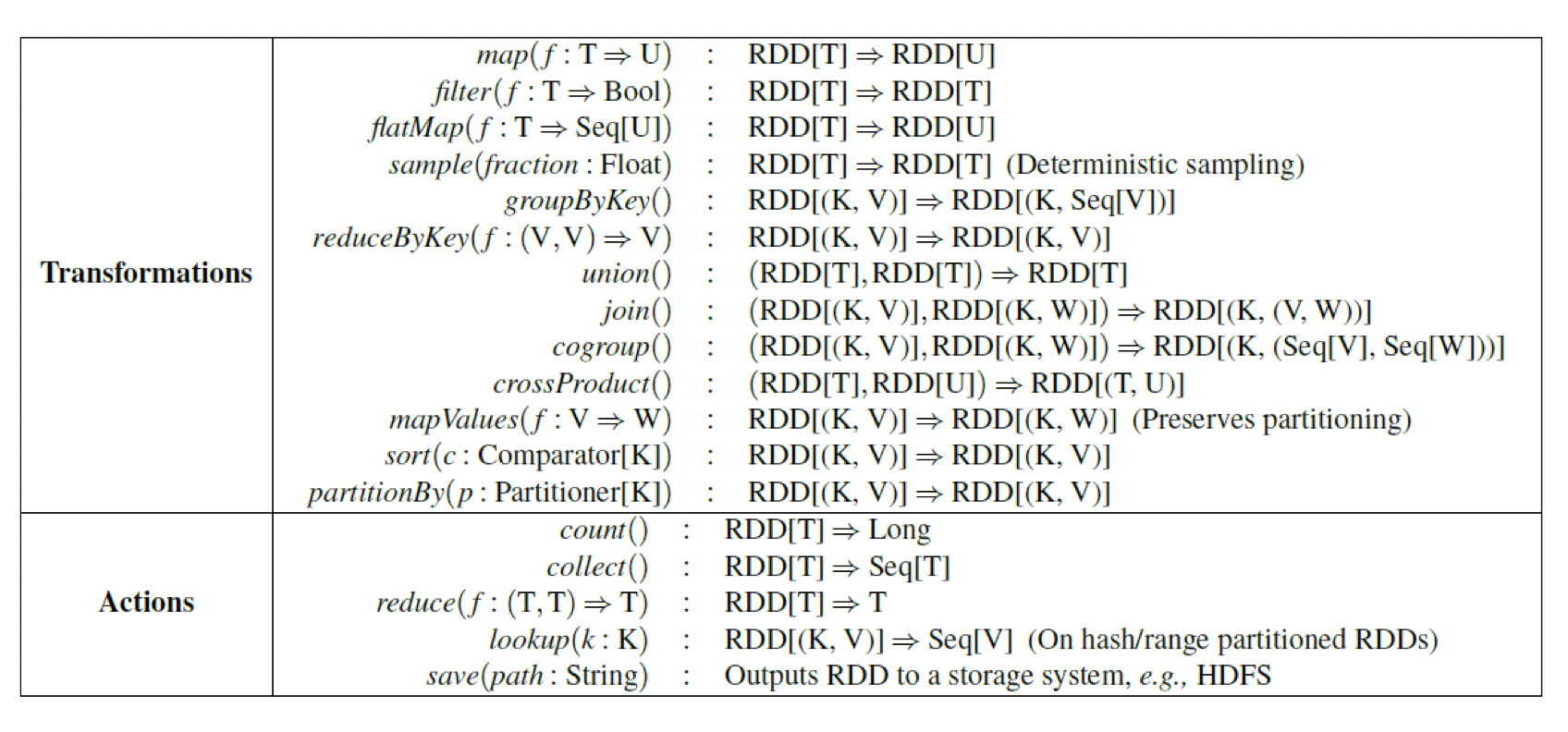 RDD has enough information about how it was derived from to compute its partitions from data in stable storage.
