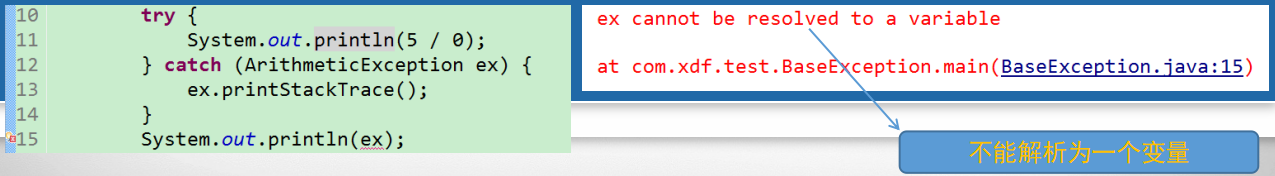 05.在catch块中可以使用异常参数来获取异常的相关信息。异常参数是这个catch块中的局部变量,其它块不能访问。