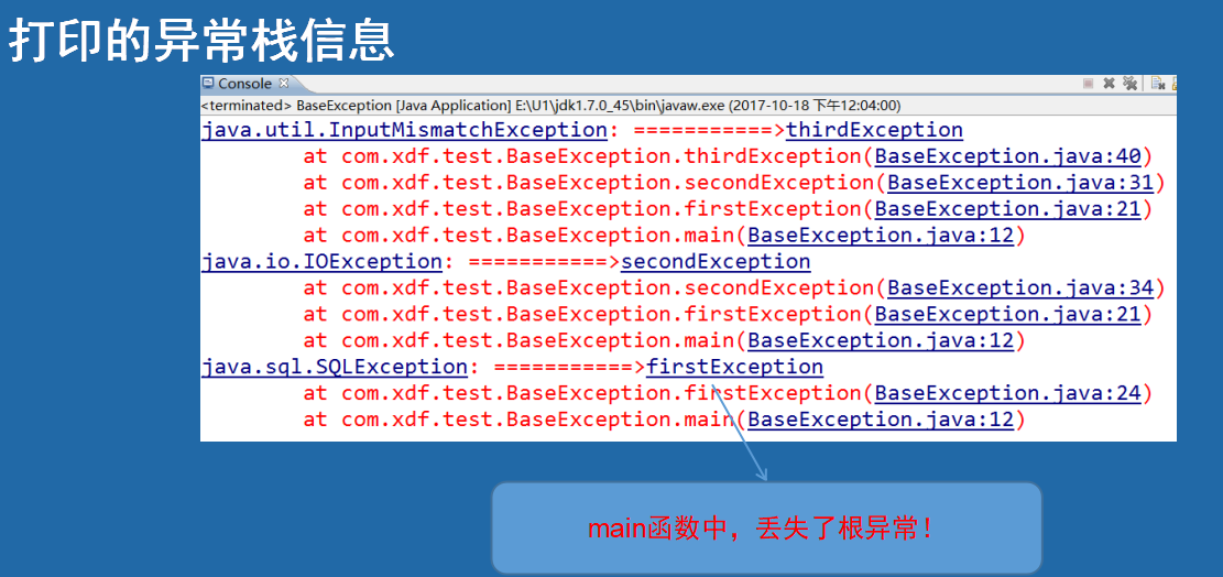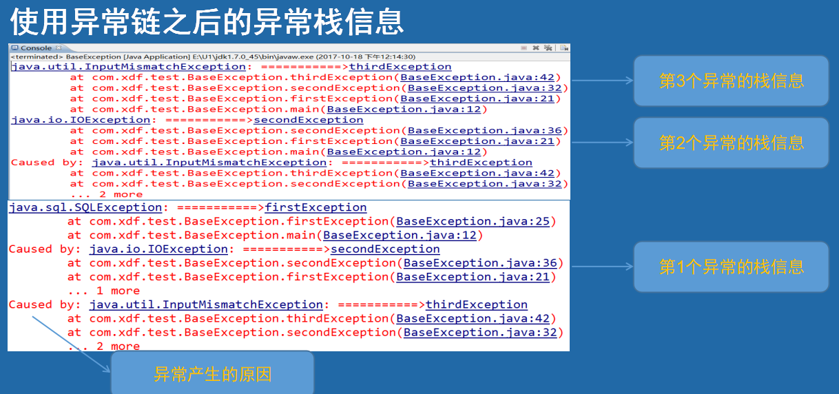 以上就是心灵美夕阳最近收集整理的关于深入异常处理机制 一:所有异常和错误的父类--Throwable 二:异常的使用 三:throw和throws的使用 四:异常链的使用 五:自定义异常 六:使用异常的注意事项的全部内容,更多相关深入异常处理机制 一:所有异常和错误内容请搜索靠谱客的其他文章。