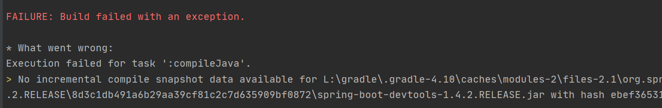 以上就是糊涂羽毛最近收集整理的关于问题记录--gradle: No incremental compile snapshot data available for...环境报错现象解决方案的全部内容,更多相关问题记录--gradle:内容请搜索靠谱客的其他文章。