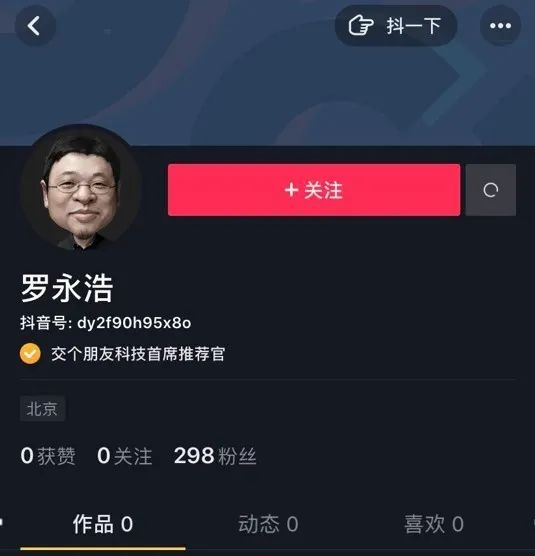 自从罗永浩在微博高调宣布将进军电商直播以来,各路传闻不断,先是6000万签约抖音、8000万签约淘宝。昨日又有消息称罗永浩已经确定和抖音直播独家签约。新浪科技发现,罗永浩已入驻抖音,账号认证信息为:交个朋友科技首席推荐官。