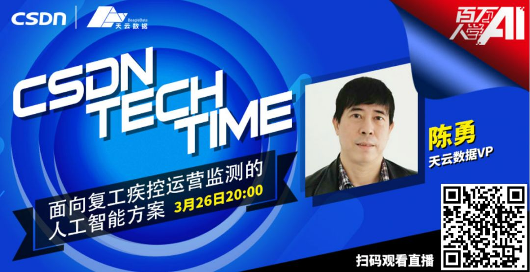 防疫、复工如何并行?天云数据推出人工智能监测方案!到底如何做到事前预防,而不是事后诸葛亮?本周四晚8点,天云数据VP陈勇为各位揭晓答案!