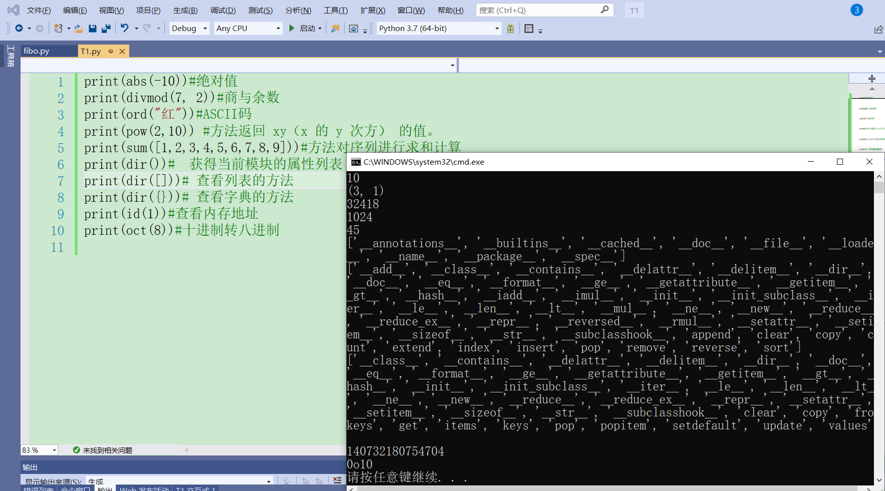 以上就是乐观绿茶最近收集整理的关于零基础学Python(第二十二章 常用内置函数)本套学习内容共计【22】个章节,每个章节都会有对应的从0-1的学习过程详细讲解,希望可以给更多的人提供帮助。本章内容为:【常用内置函数】Python 内置函数 常用的一些内置函数演示:总结:本课程目录为:Python爬虫完整学习地址:【https://blog.csdn.net/feng8403000/category_10810248.html】的全部内容,更多相关零基础学Python(第二十二章内容请搜索靠谱客的其他文章。
