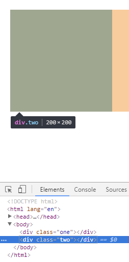可以看出给one左浮动后two消失不见了,这时审查元素看一下
