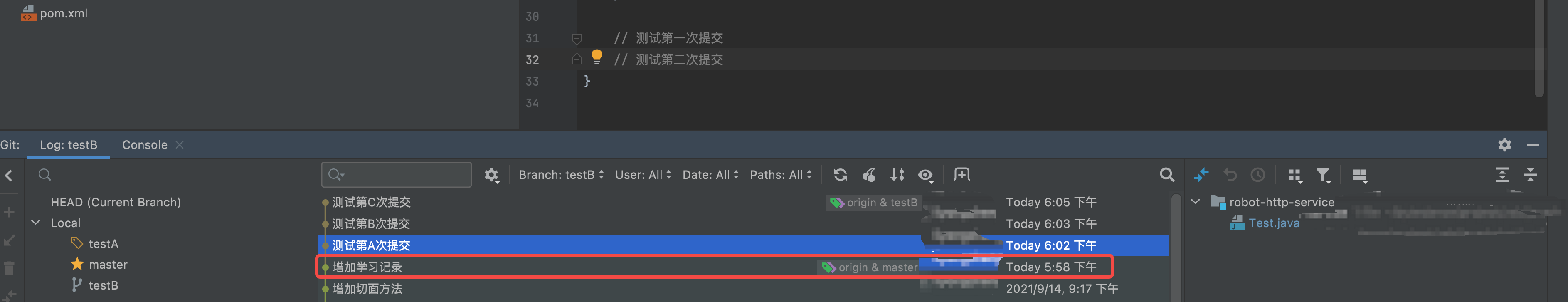 1 分支B的3次测试提交