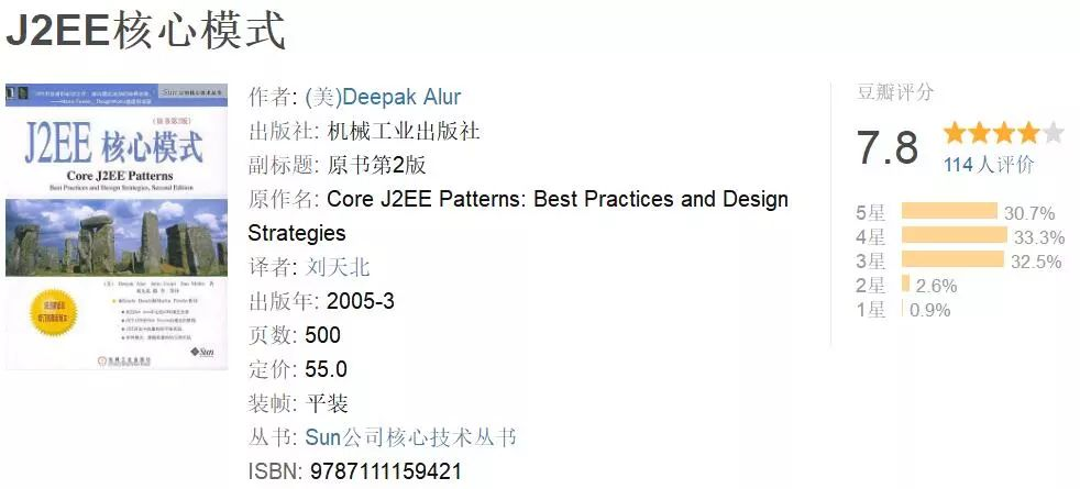 本书根据设计模式的功能划分,例如表示层的设计模式,业务层的设计模式等。这是任何Java J2EE开发人员的必读书籍。尽管像Spring这样的现代框架可以确保你在框架级别遵循这些J2EE设计模式,例如Spring MVC确保了MVC的使用,它也同时使用了前端控制器(DipatcherServlet)和视图解析器(ViewResolver)。Spring框架,也让你在容器级别使用了依赖注入和IOC。话虽如此,无论你使用Spring MVC,Struts还是任何其他Web框架,对这些J2EE模式的了解都会帮助你了解代码以及创建更容易维护的解决方案。