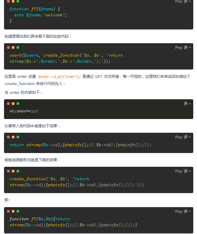 五、create_function 命令注入