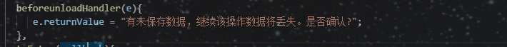 以上就是天真小甜瓜最近收集整理的关于关于页面数据未保存改变路由(beforeunload,beforeRouteLeave)的全部内容,更多相关关于页面数据未保存改变路由(beforeunload内容请搜索靠谱客的其他文章。