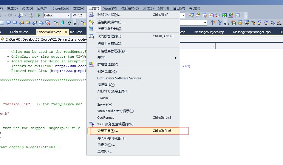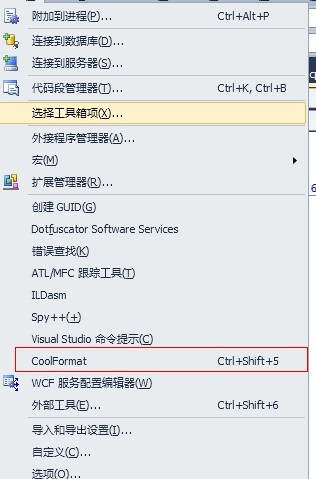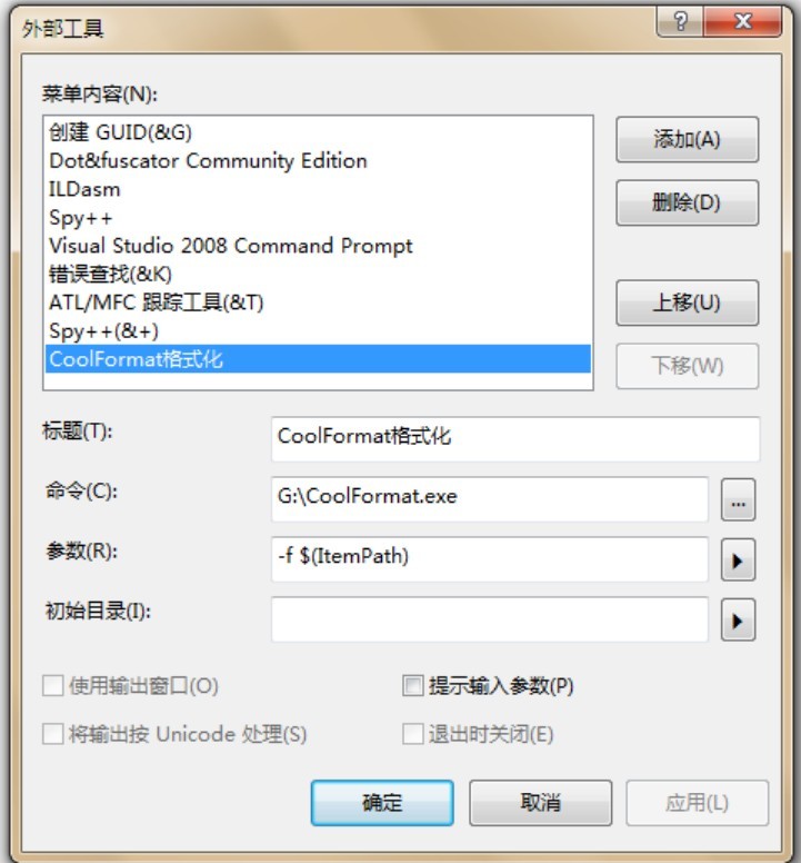 (2) 进入vs2010的外部工具,添加CoolFormat工具