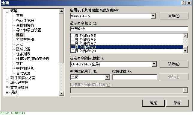 菜单进入: “工具”--->"选项"---> "环境"--->"键盘"