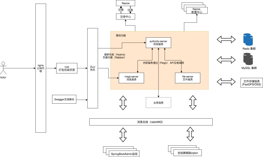 基于SpringCloud(Hoxton.SR1) + SpringBoot(2.2.4.RELEASE) 的 SaaS型微服务脚手架,具备用户管理、资源权限管理、网关统一鉴权、Xss防跨站攻击、自动代码生成、多存储系统、分布式事务、分布式定时任务等多个模块,支持多业务系统并行开发, 支持多服务并行开发,可以作为后端服务的开发脚手架。代码简洁,架构清晰,非常适合学习使用。核心技术采用Nacos、Fegin、Ribbon、Zuul、Hystrix、JWT Token、Mybatis、SpringBoot、Seata、Nacos、Sentinel、 RabbitMQ、FastDFS等主要框架和中间件。