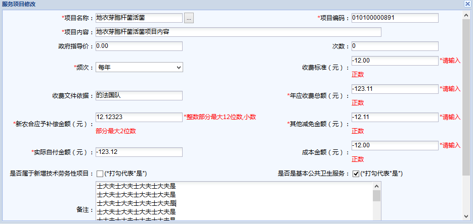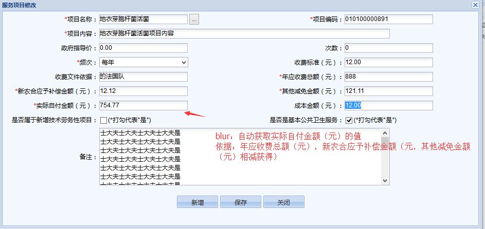 /*TODO金额计算:实际自付金额=年应收费总额-新农合应予补偿金额(元)-其他减免金额(元)。
