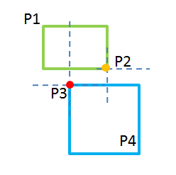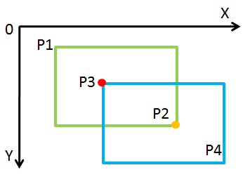 问题定义:给定两个边与坐标轴平行的矩形,分别由左上角与右下角两点指定(以此同时,我们可以用右上和左下的两个点来进行推出同样的结果。),即矩形(P1,P2)与(P3,P4),判断两矩形是否相交。