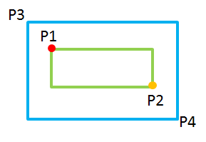 我的思路:如下图所示,首先求出P1与P3点在X方向较大值与Y方向较大值的交点,在下图中就是P3,用红点(记为M点)表示。