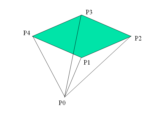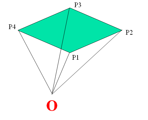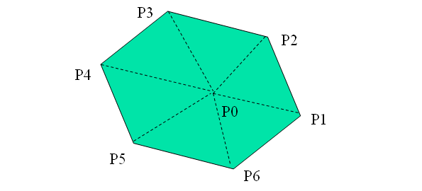 很自然地,我们会想到以 P1为扇面中心,连接P1Pi就得到N-2个三角形,由于凸性,保证这些三角形全在多边形内,那么,这个凸多边形的有向面积:
