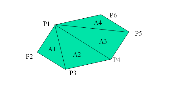多边形面积公式:A=sigma(Ai) (i=1…N-2)