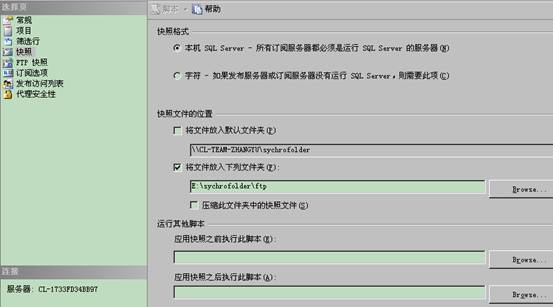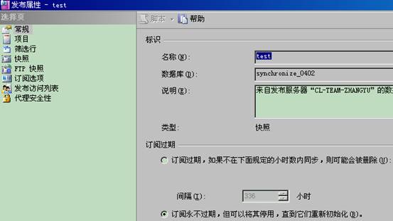 (2)选中发布数据库-发布类型选择快照(快照地址选择共享文件夹sychrofolder)-选中要发布的数据表-指定运行快照代理时间
