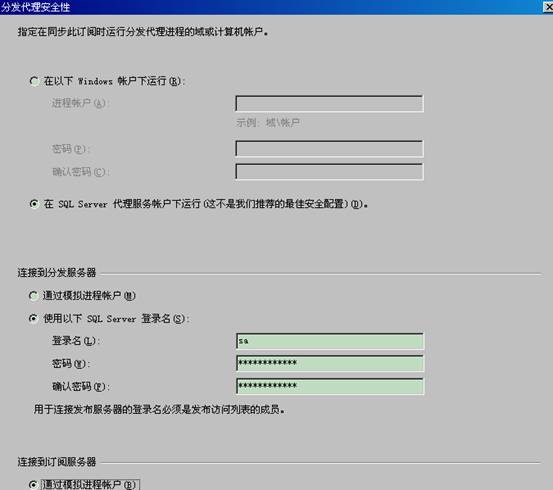 连接到发布服务器选中"使用以下SQL Server登录名"