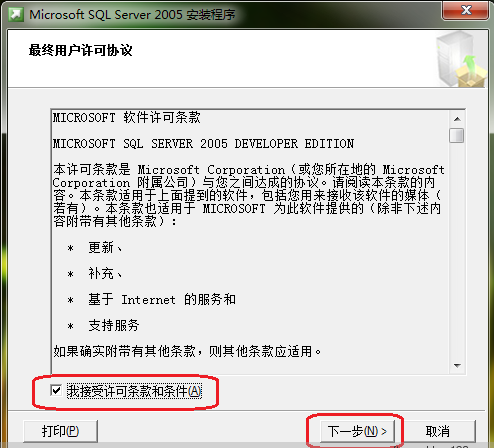 选中“我接受许可条款和条件”,并点击下一步: