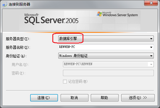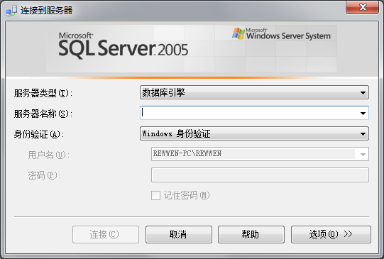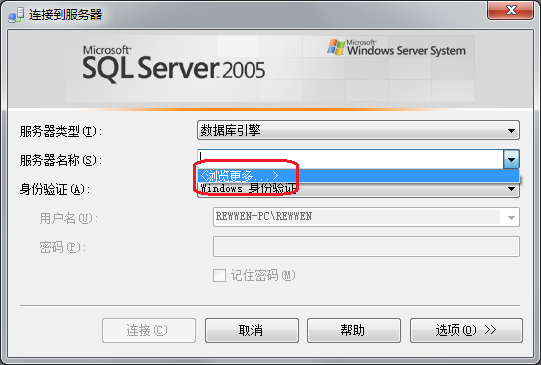 此时点击“服务器名称”右边组合框的下拉箭头,选择“<浏览更多...>”,如图所示:
