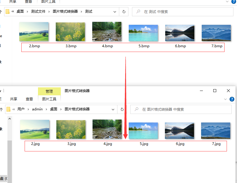 步骤4,从转换结果我们可以看到,软件成功的将所有bmp图片转成了jpg格式。