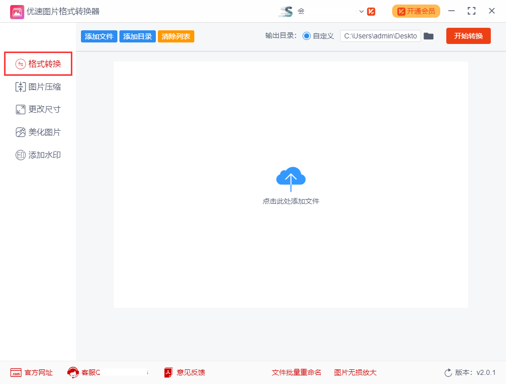 步骤1,如下图所示,点击软件左边第一个【格式转换】功能选项,从这里进行图片格式的转换操作。