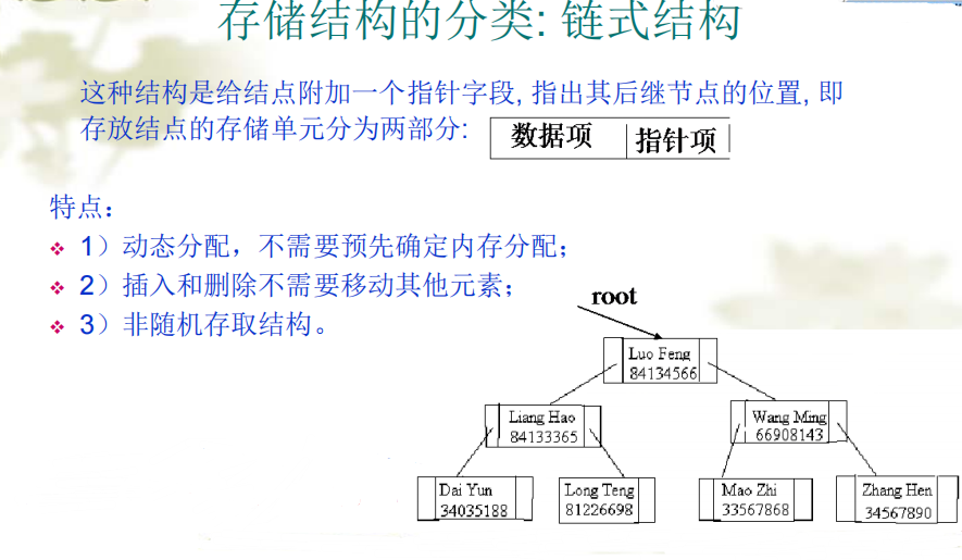存储结构的主要部分:❖ 存储结点(每个存储结点存放一个数据元素)❖ 数据元素之间关联方式的表示