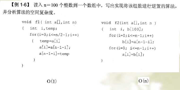 一个算法在执行期间所需要的存储空间量包括以下部分:➢ 程序代码所占用的空间;➢ 输入数据所占用的空间;➢ 辅助变量所占用的空间;