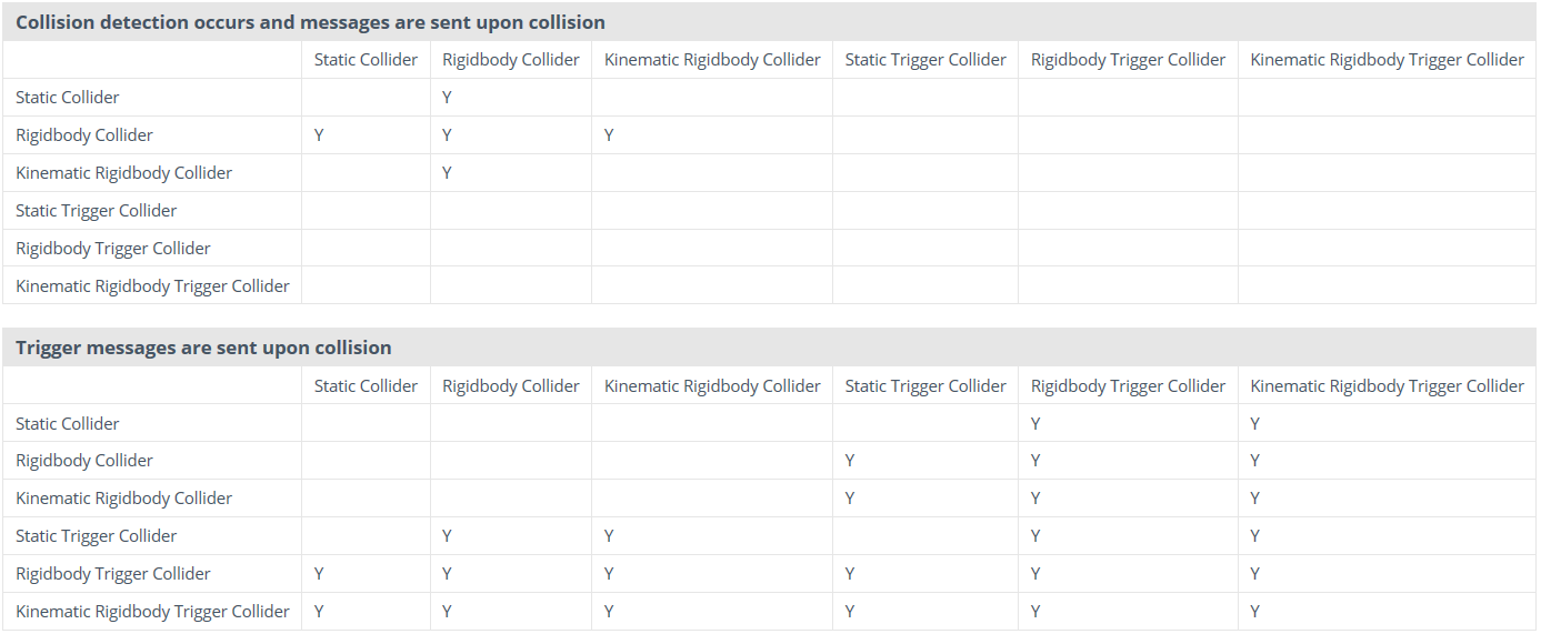 通常,两个网格碰撞器之间不会发生碰撞。所有的网格碰撞器可以和任何原始碰撞器碰撞。如果网格标记为凸起的(Convex),那么就可以和其他网格碰撞器碰撞。