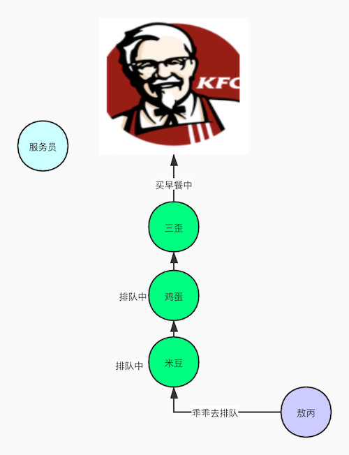 我举个例子给他家通俗易懂的讲一下的,想了好几天终于在前天跟三歪去肯德基买早餐排队的时候发现了怎么举例了。