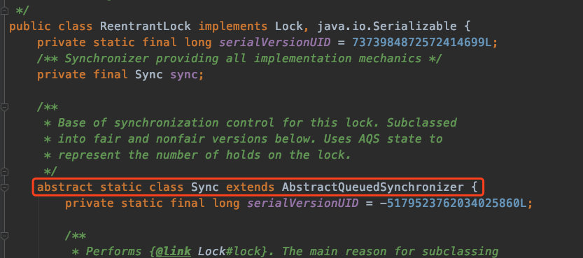 ReentrantLock的Sync继承了AbstractQueuedSynchronizer也就是我们常说的AQS
