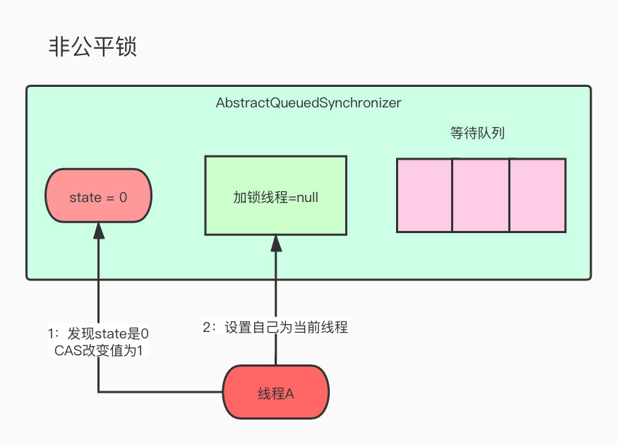 A线程准备进去获取锁,首先判断了一下state状态,发现是0,所以可以CAS成功,并且修改了当前持有锁的线程为自己。