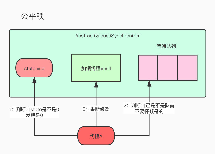 现在是早餐时间,敖丙想去kfc搞个早餐,发现有很多人了,一过去没多想,就乖乖到队尾排队,这样大家都觉得很公平,先到先得,所以这是公平锁咯。
