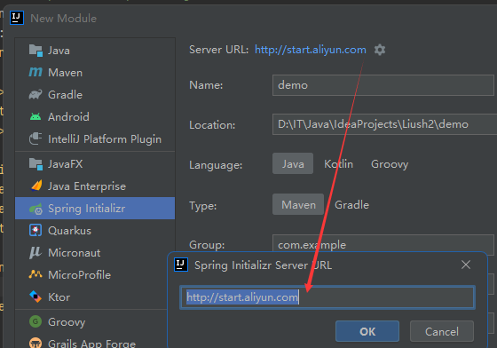 3. 创建SpringBoot使用阿里云代理地址。