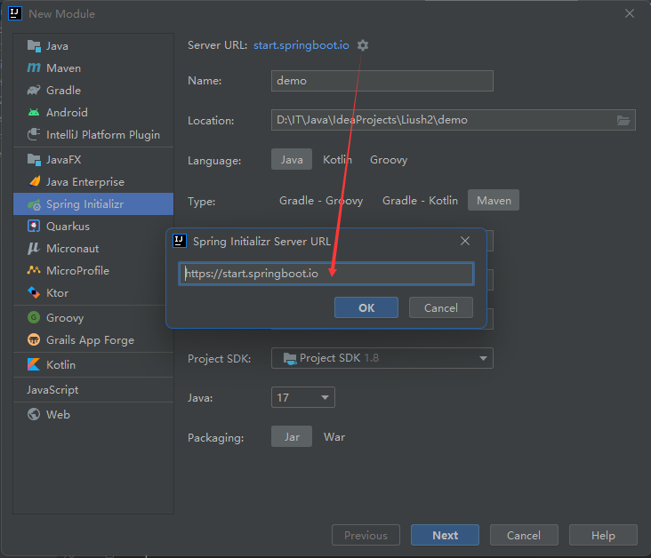 1. 这种方式是通过官默认的网地址进行在线构建Spring Boot项目的。