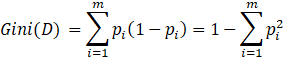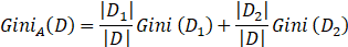 如果属性A的二元划分把D划分成D1和D2,则给定该划分,D的基尼指数为: