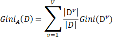 属性A的基尼指数定义为