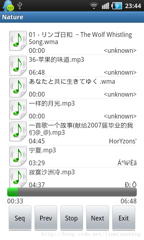而从学Android开始,在看教程的时候,我就想,我要自己做一个音乐播放器,因为一个完整的音乐播放器是有很多功能的,它涉及到很多方面的知识,可以帮助我们更好地学习和掌握关于Android的点点滴滴的知识。
