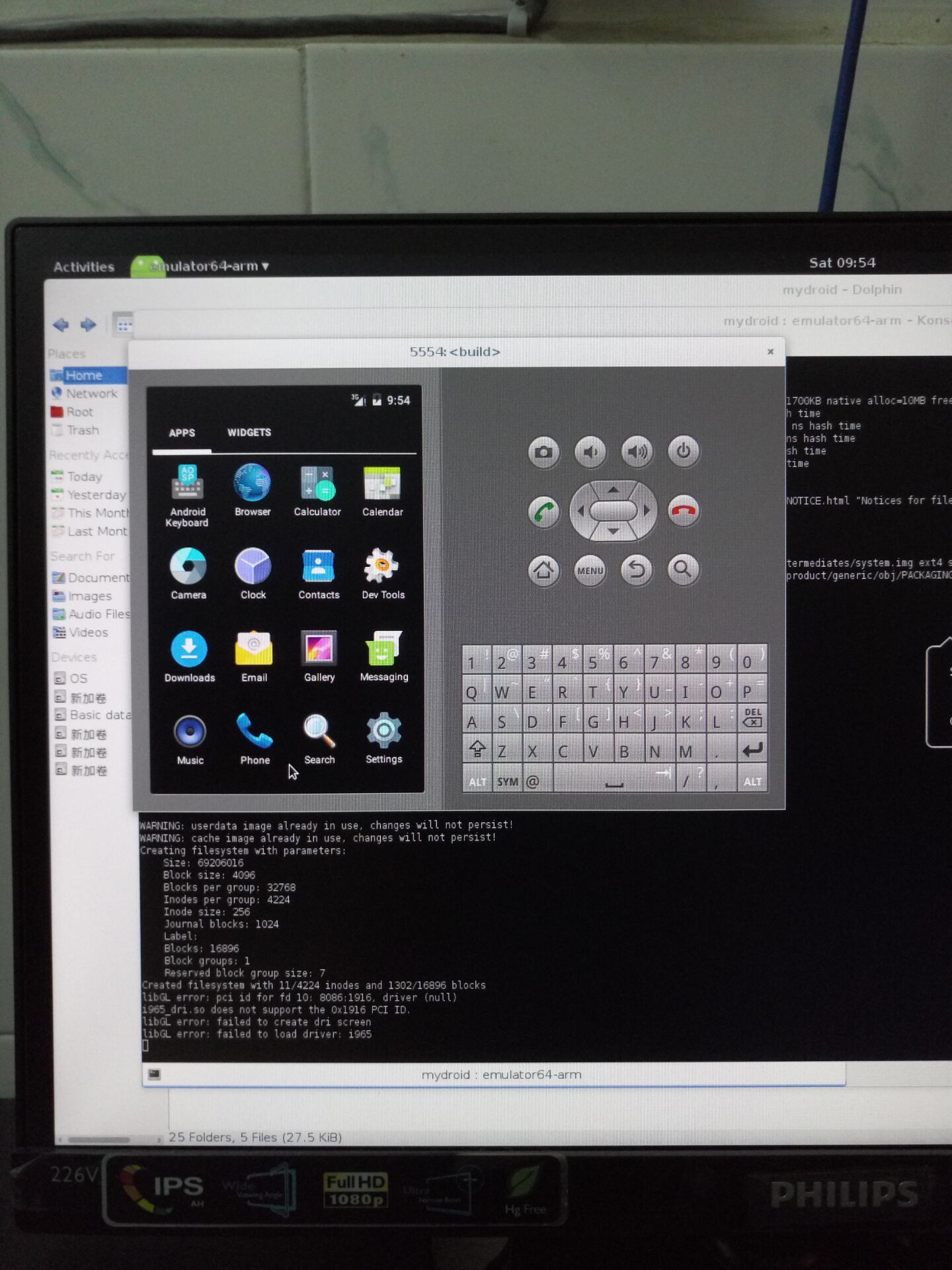 以上步骤执行完之后,就是一段非常漫长的等待了,我从中午十二点多开始编译,一直到晚上九点多编译完成,整个编译过程耗时九个多小时,幸好我的运气还不错,编译过程中没有出现任何错误,只是中途意外中断了一次,但是Android源码是可以接着上次中断的位置继续编译的,已经编译的部分不会重复编译,因此并未对我造成大的影响。同志们,我想说的是,编译的过程中一定要有耐心哟!