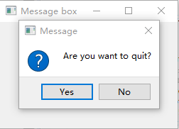 注:第28行解释:QMessageBox.question(self, 'Message', 'Are you want to quit?', QMessageBox.Yes | QMessageBox.No,QMessageBox.Yes)